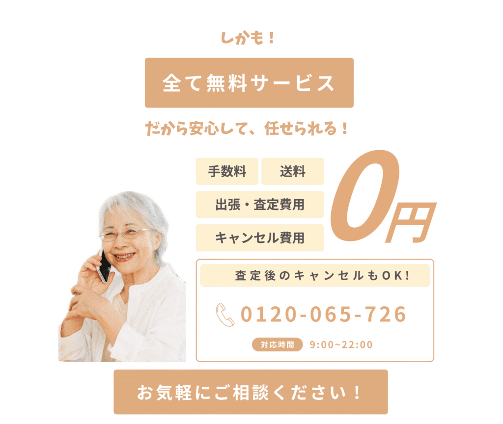 査定料・出張費・キャンセル料など、あらゆる費用は一切不要です。
